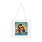 The nostalgic poster-style illustration — complete with a sly smile, classic shades, and playful palm-inspired accents — brings a flirty, throwback vibe that’s equal parts cheeky and carefree. Whether you’re packing snacks for the drive, sunscreen for poolside laughs, or a paperback for a beach escape, this tote is ready to tag along.