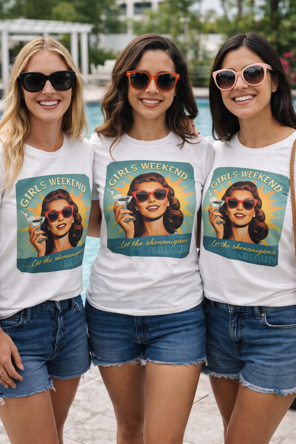 Girls Weekend Tee – Retro Summer Vibes “Let the Shenanigans Begin”